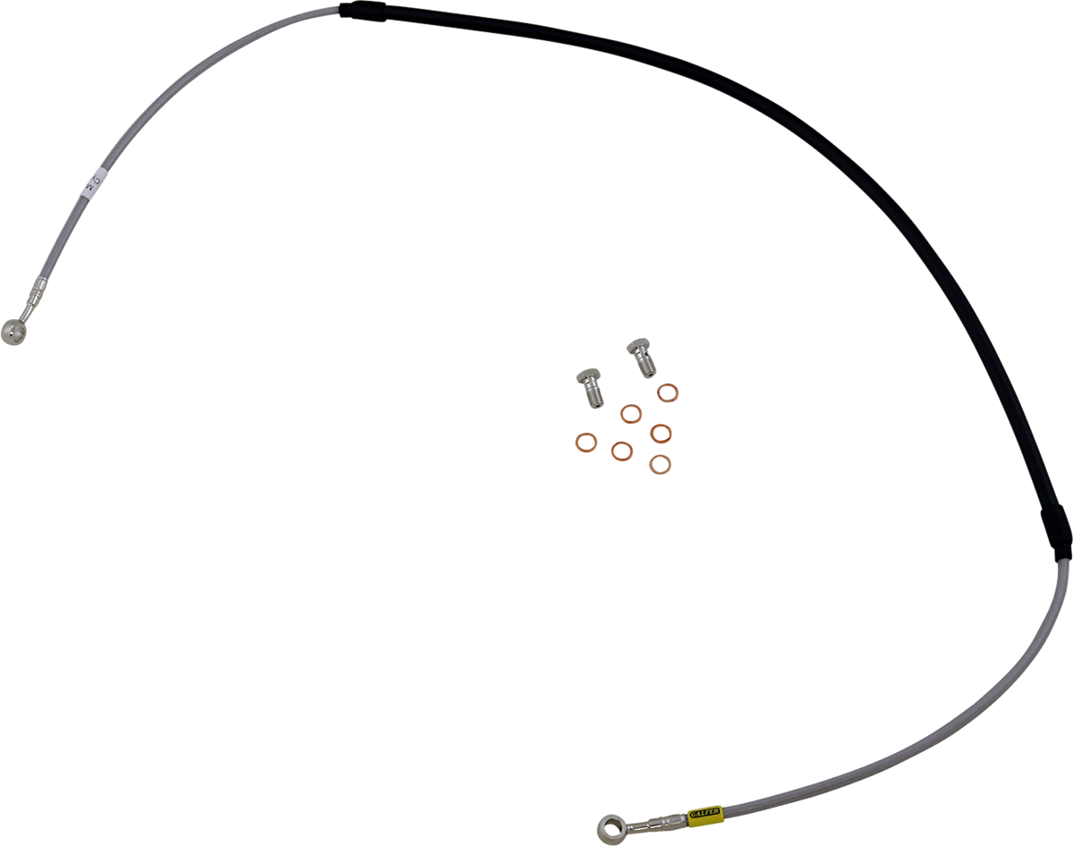 Unleash superior braking on your XR400R '96-'04 with this complete stainless steel front brake line kit. Crafted with 64 braided steel strands, it delivers zero expansion for unbeatable stopping power. Requires less lever pressure so you can brake harder and faster with enhanced feel. Fittings come pre-positioned and swivel 180° for seamless installation. A clear protective coating guards against scratches and moisture. Fully loaded with banjo bolts and washers, it’s ready to install and dominate the ride.