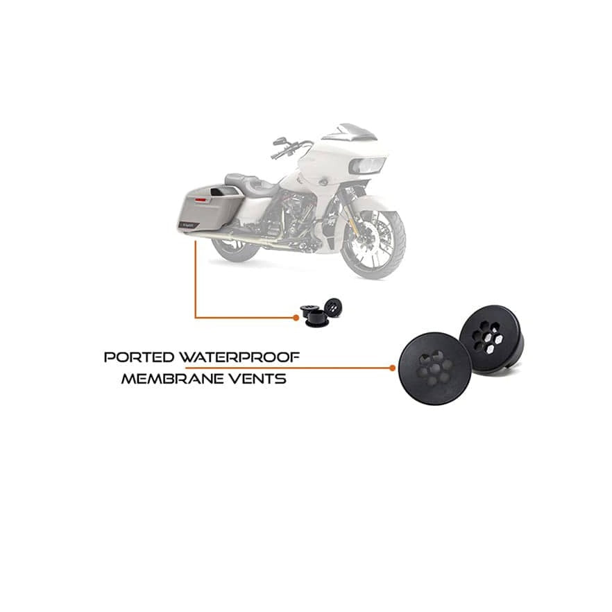 With all this new bass comes new technology… Well Sorta… The Product Development team came up with a solution to port bass coming from your saddles without destroying the structure of each saddlebag. Each subwoofer kit comes with ported grommets equipped with a unique membrane allowing sound to pass through while keeping the elements out. It’s specific technology all of you know and have experienced in sports earbuds; it’s the special membrane that’s the genius behind this product; you’re welcome.