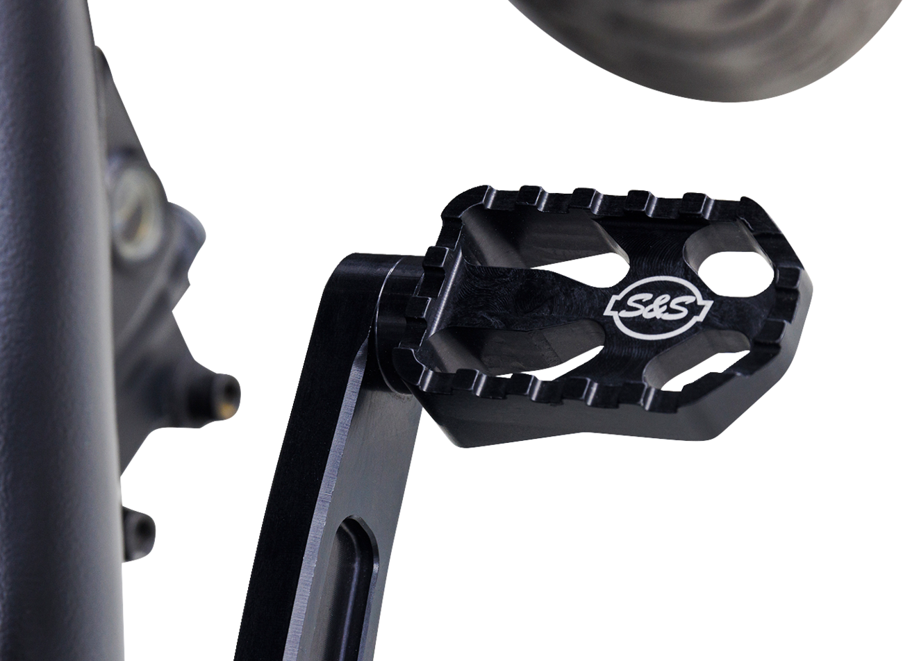 The Mid Mount Brake Pedal is perfect for those who crave excitement and taking risks. Made from 6061-T6 billet aluminum and featuring a bold black anodized construction, this pedal is designed to elevate your braking experience. It provides ample clearance for S&S performance exhaust and works with OEM Mid Mount foot controls. The CAD designed and stress tested construction ensures improved braking control, while the large contact rubber footpad with the iconic S&S logo adds a touch of adventure. Made in the USA, this is not just any exhaust product - it's a statement.