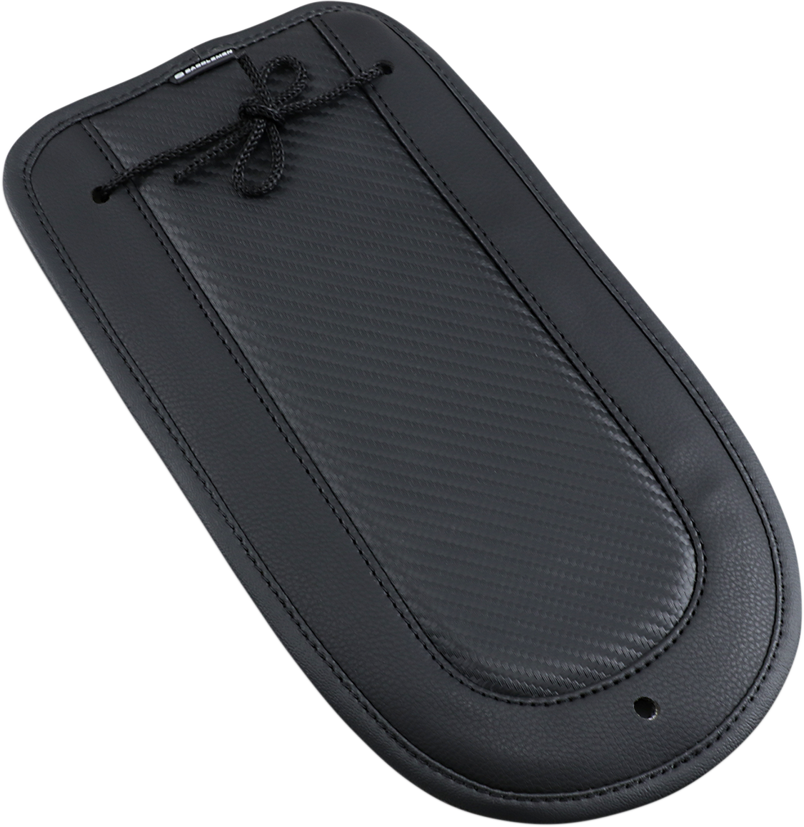 Decorative trim for solo seat installation, Contoured to fit fender, Covers marring of paint from pillion installation, Installs under solo seat and rear seat mount tab, Matches Saddlemen seat, luggage and tank chaps, Popular Desperado styling with studs, conchos and leather ties, Soft fender protector backing and attractive edge welting, Made in the USA