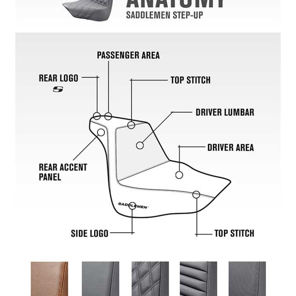 SADDLEMEN Step-Up Seat - Full Lattice Stitch - Black - Dyna '96-'03