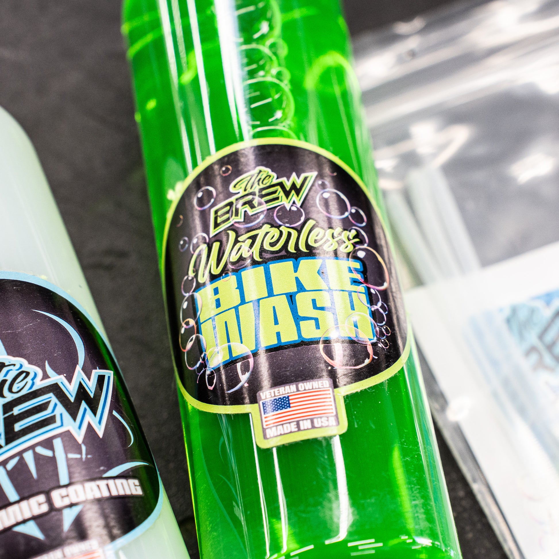 All-in-One Kit: Includes 8oz The Brew™ Waterless Bike Wash, 8oz The Brew™ Spray Wax, and 8oz The Brew™ Ceramic Coating — everything needed for a full clean and protect cycle.